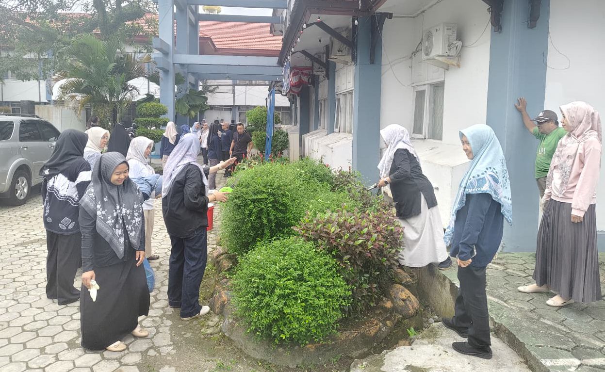 Kegiatan ini menjadi momen kebersamaan yang terasa hangat setelah masa libur dan pola kerja yang lebih fleksibel. Para pegawai tampak saling bekerja sama, menyapu area halaman, memungut sampah, serta merapikan berbagai sudut kantor agar kembali bersih dan nyaman. Suasana santai namun penuh kekompakan mewarnai kegiatan yang dilakukan sejak pagi hari tersebut.